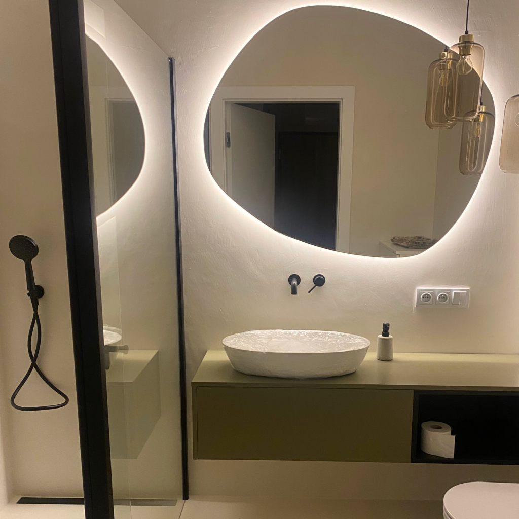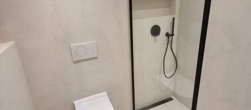 ➡️ W strefach narażonych na wilgoć — na przykład w łazience lub pod prysznicem — należy zastosować system przeznaczony do takich przestrzeni i dokładnie trzymać się technologii. Dzięki temu mikrocement zachowa trwałość i estetykę przez długie lata.