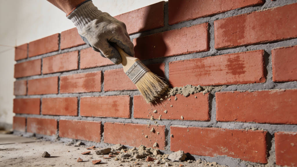 Przed nałożeniem fugi szczeliny między cegłami muszą zostać dokładnie oczyszczone z resztek zaprawy murarskiej na głębokość 15–20 mm. Luźne fragmenty i pył usuwa się za pomocą szczotki lub sprężonego powietrza, aby zapewnić przyczepność nowej warstwie. Przy płytkach klinkierowych na styropianie należy zachować ostrożność, aby nie uszkodzić warstwy zbrojącej.