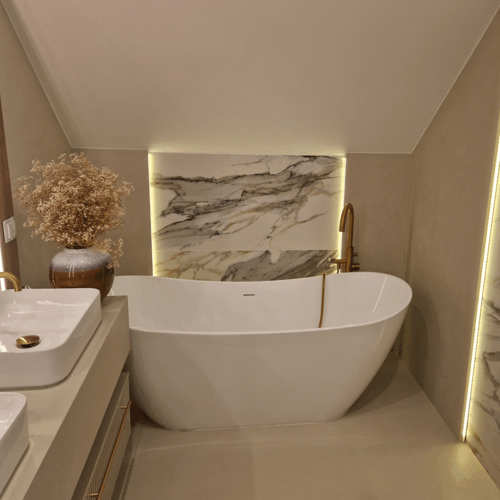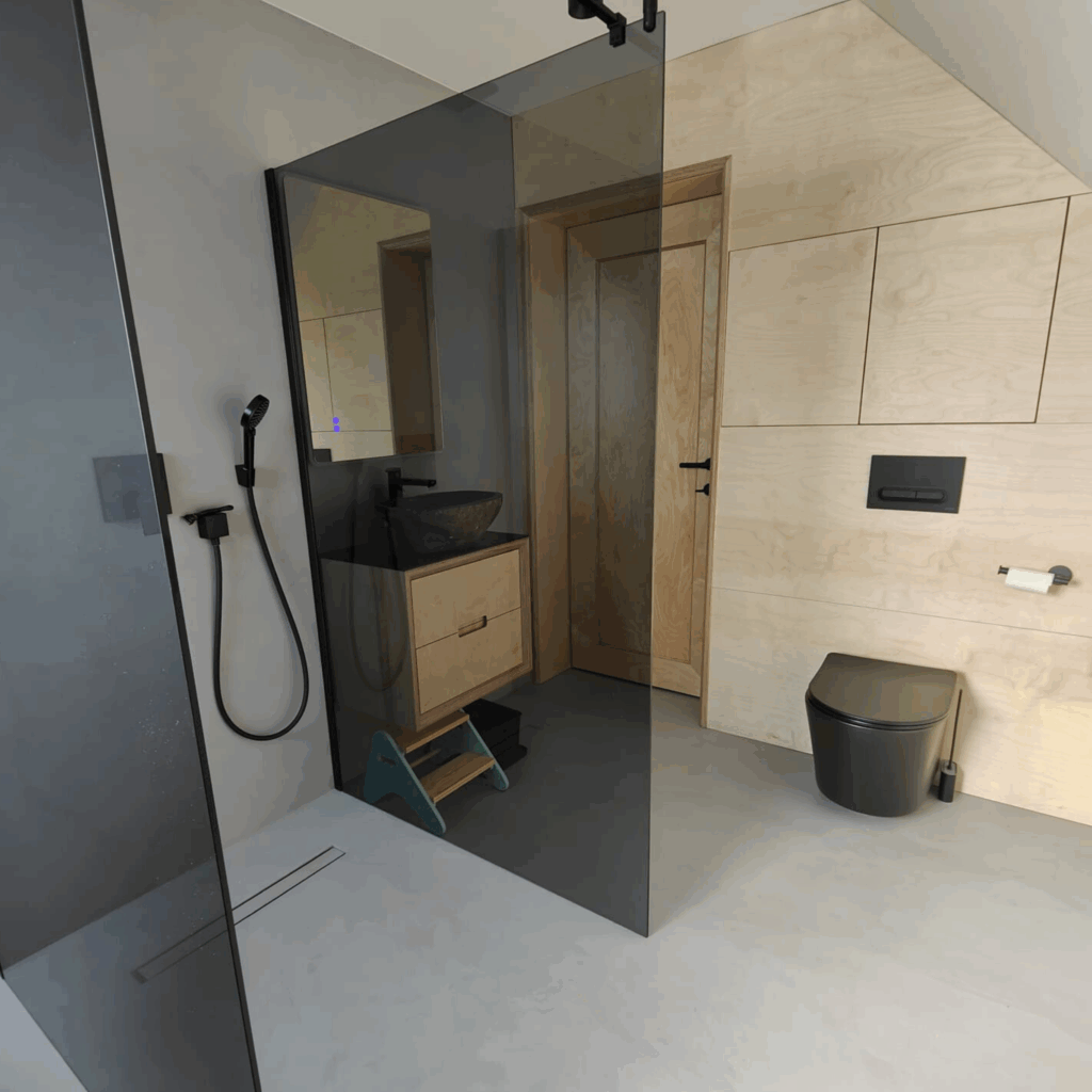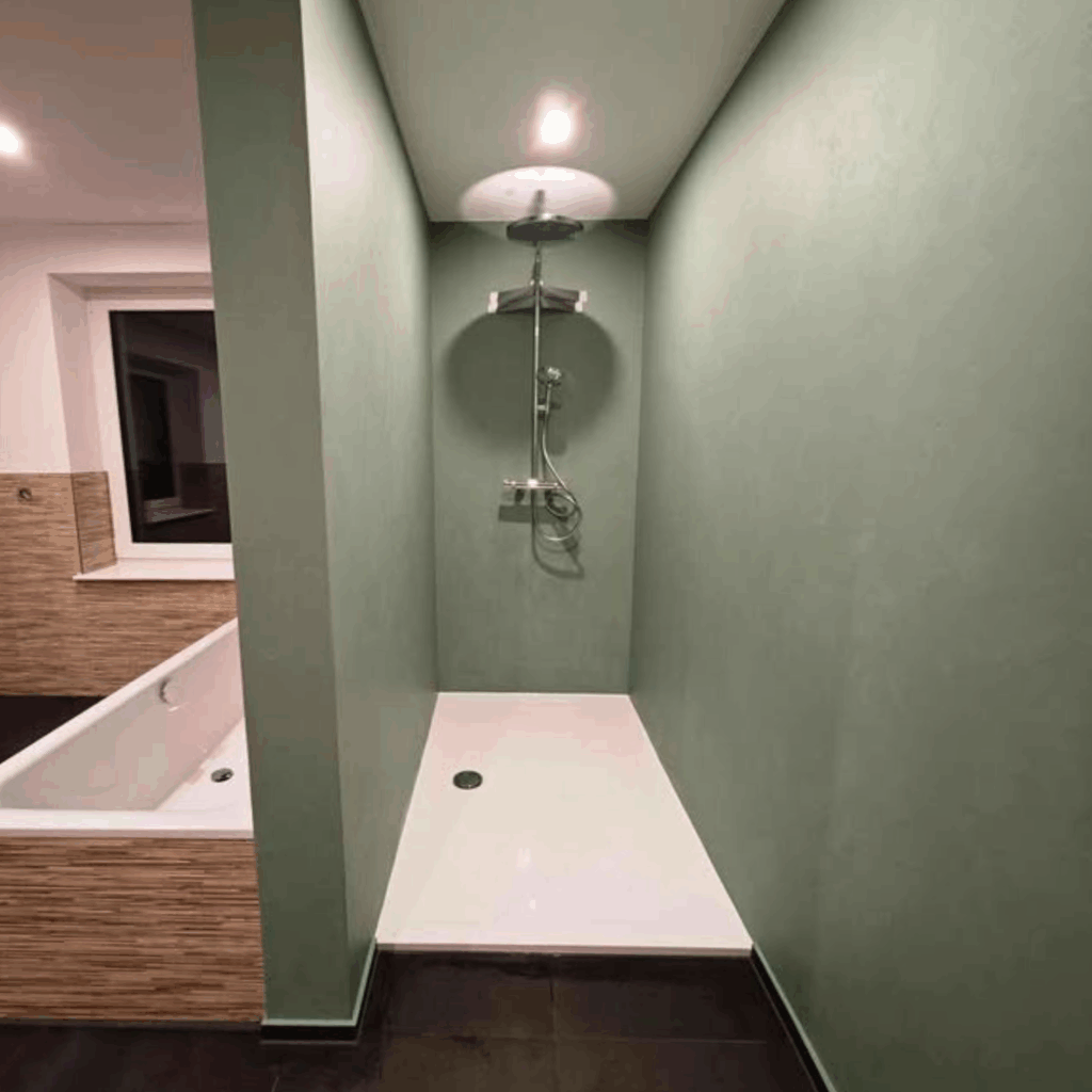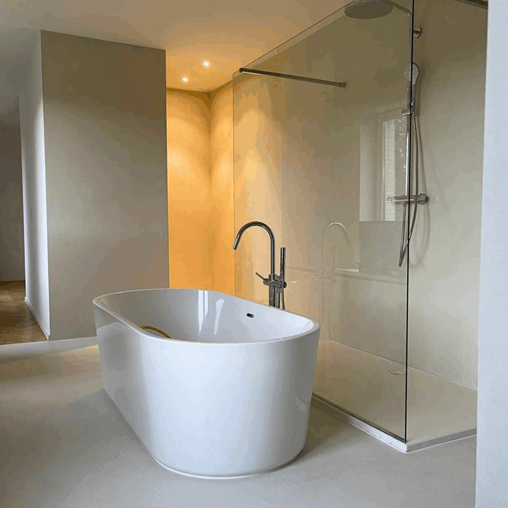 🔸Łazienki – podłogi i ściany, również w strefach mokrych (prysznic, okolice wanny), 🔸Kuchnie – podłogi, ściany, a także przestrzeń nad blatem kuchennym, 🔸Korytarze i przedpokoje – trwałe powierzchnie odporne na intensywne użytkowanie, 🔸Schody – jednolita i łatwa w utrzymaniu powierzchnia bez fug, 🔸Blaty i meble – nowoczesne, spójne wykończenia dopasowane do aranżacji wnętrza.