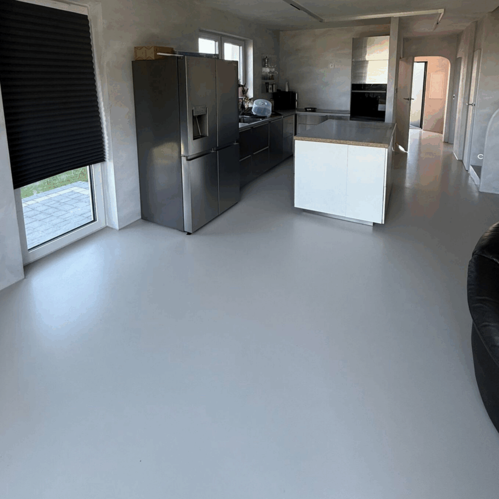 🛋 Podłogi – trwałe, odporne i całkowicie bezfugowe. Pozwalają uzyskać jednolitą powierzchnię, która płynnie łączy salon z kuchnią lub korytarzem.
