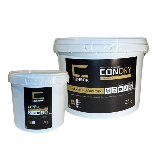 Zawartość zestawu: CONDUO = CONDRY (składnik A: sucha masa dekoracyjna) + CONWET (składnik B: płynny polimer)