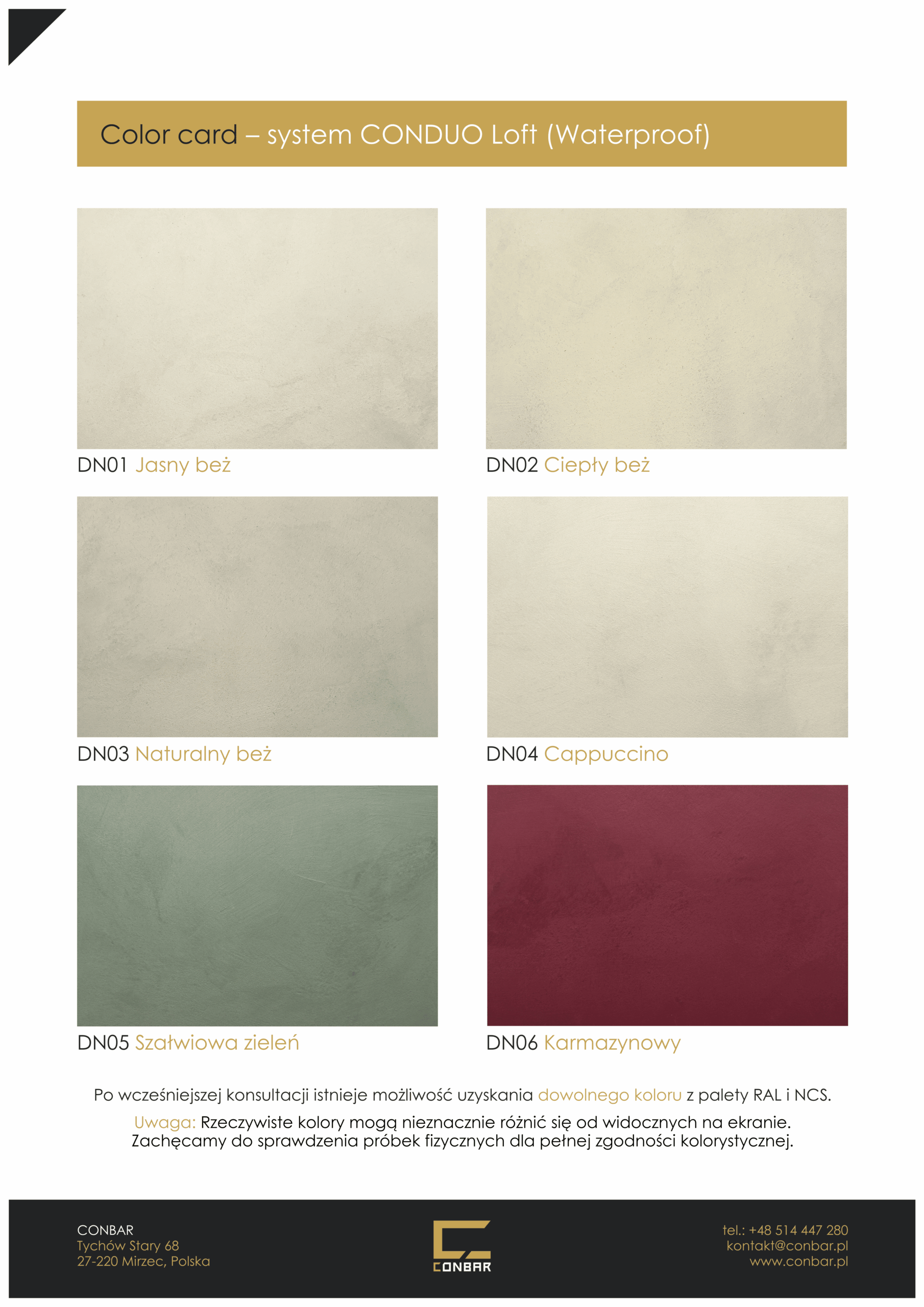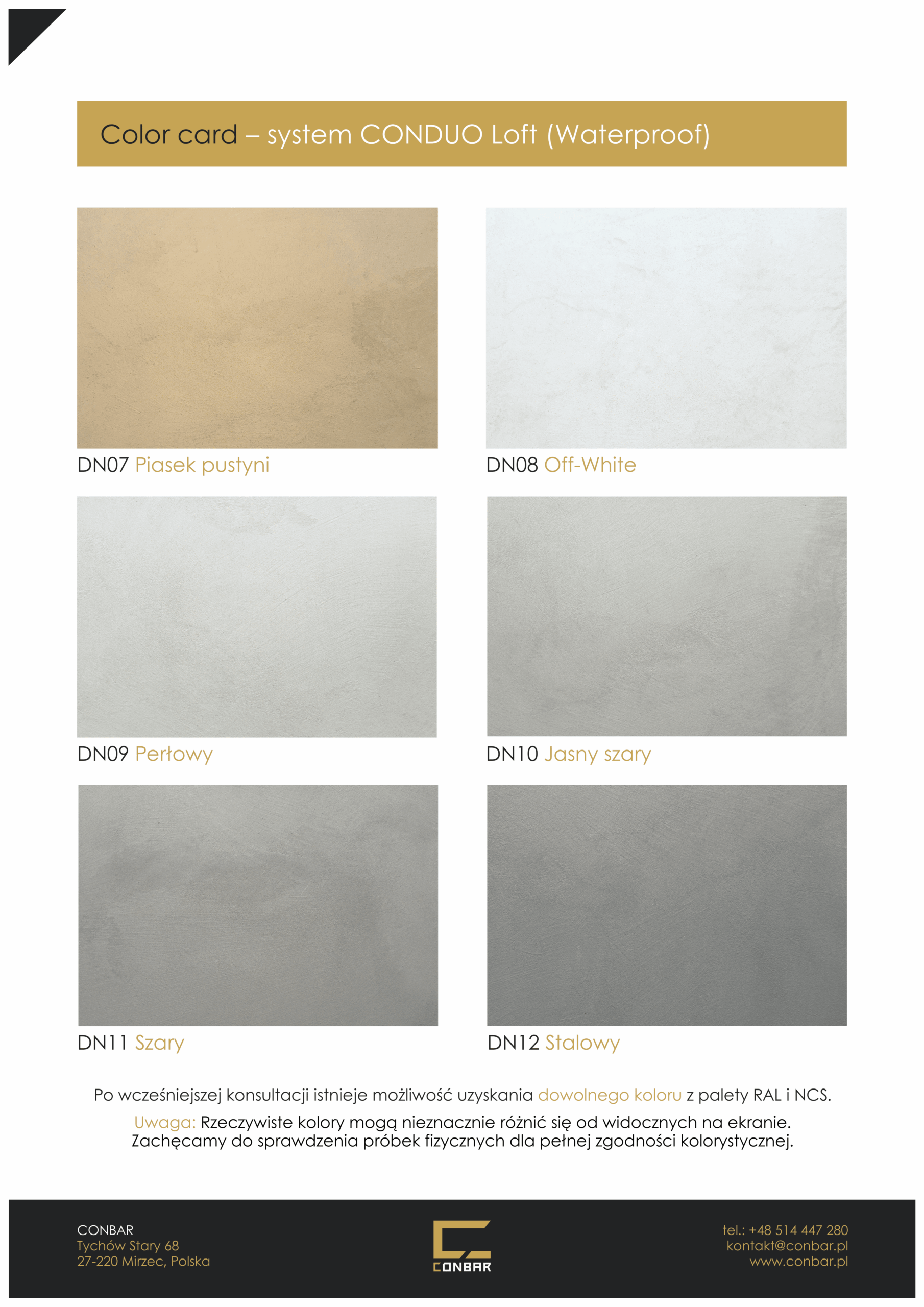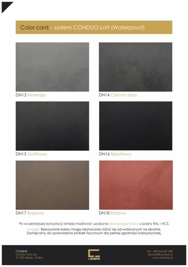 » Wzornik kolorystyczny mikrocementu CONDUO Loft (również dla wersji wodoodpornej w masie Waterproof)