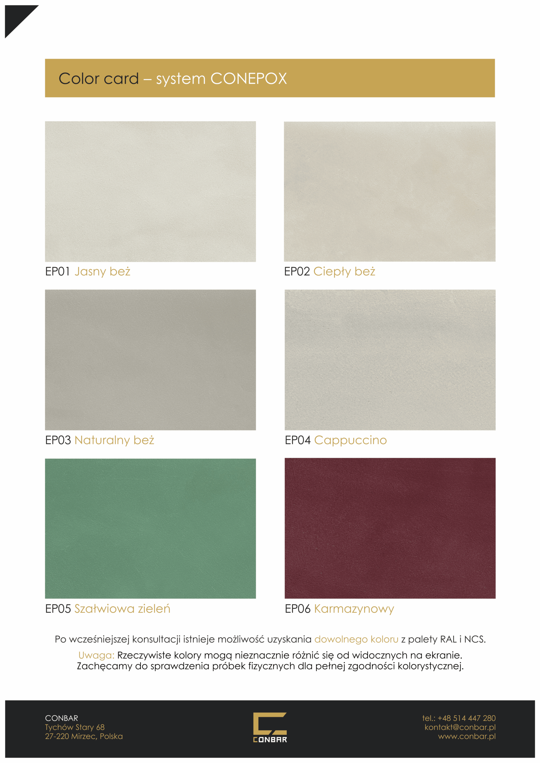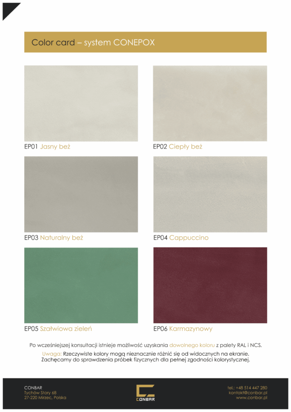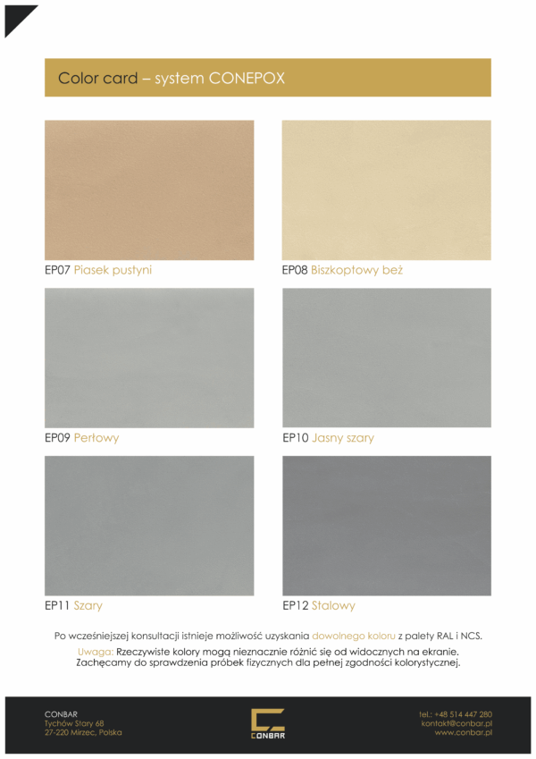 »   Wzornik kolorystyczny mikrocementu CONEPOX